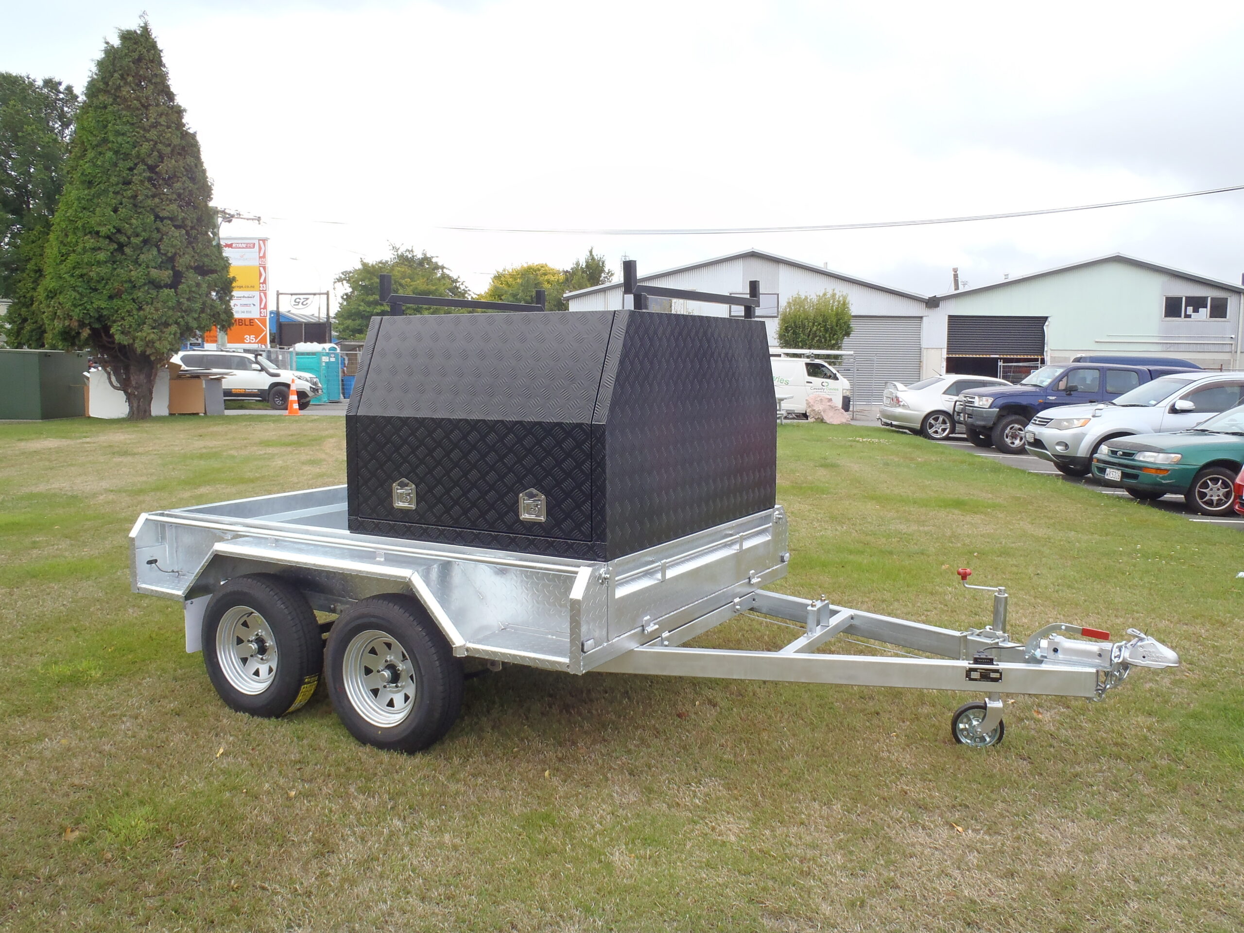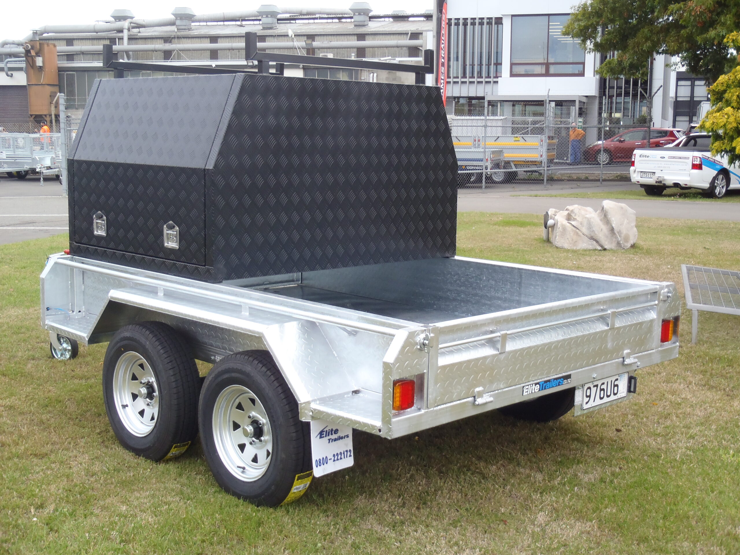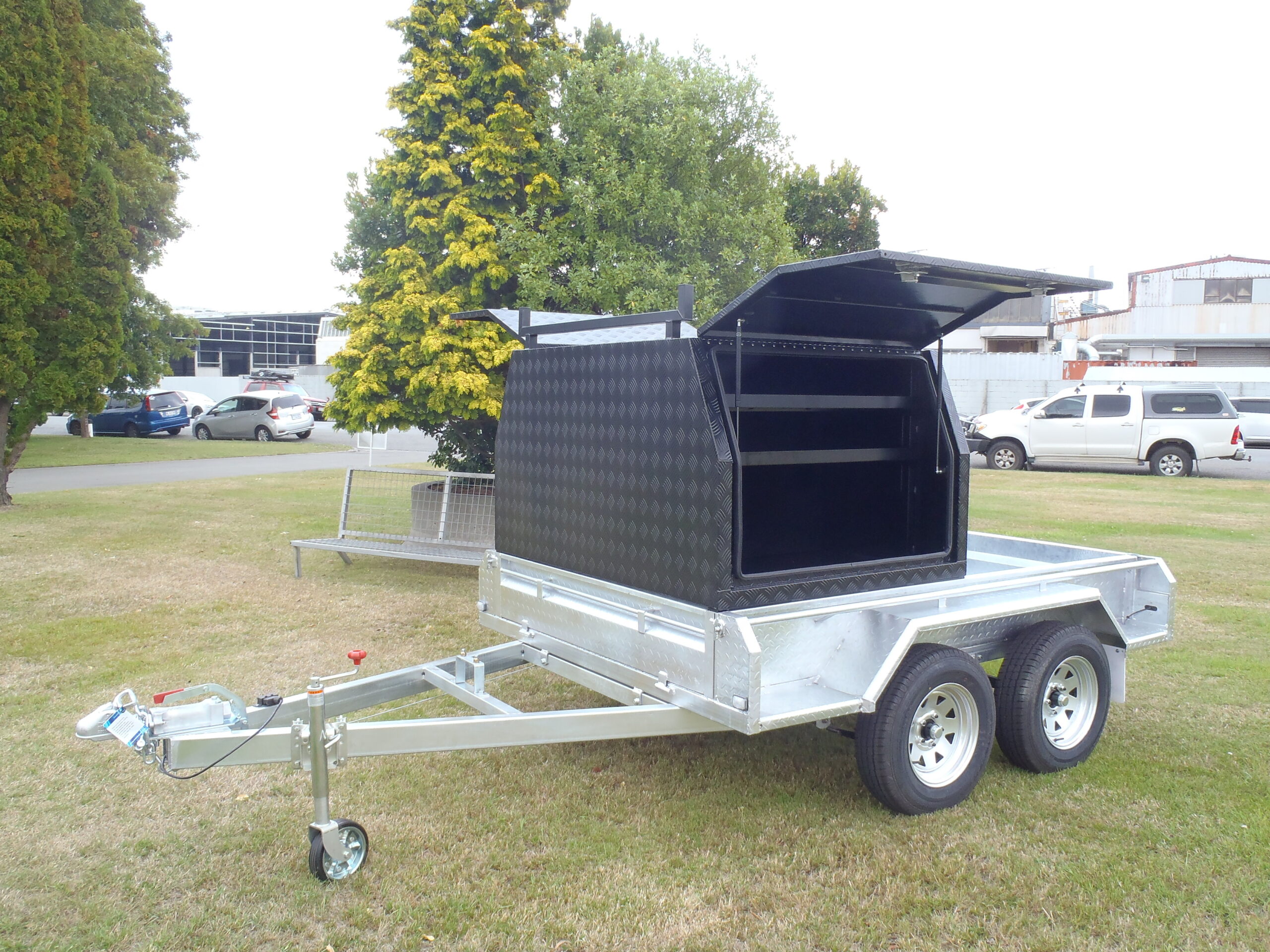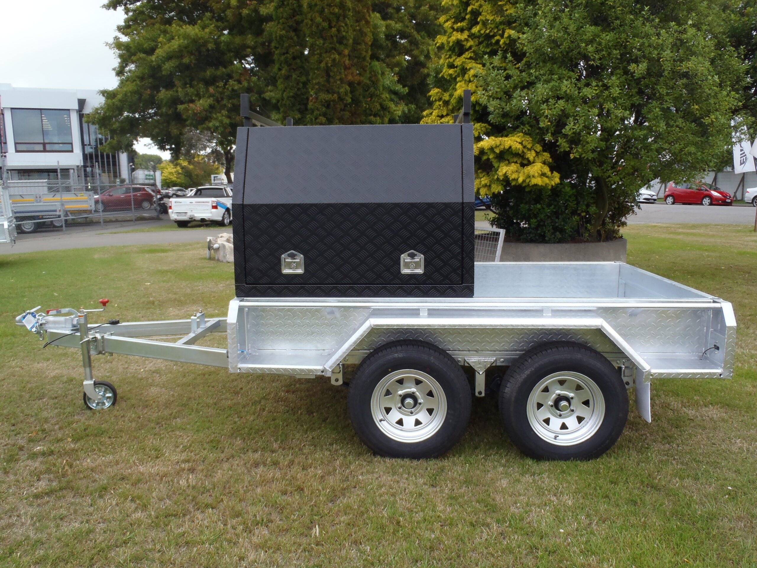 Want extra tool storage but still need some trailer space? If that’s your requirement here’s our popular 8×5 Alloy Top cut down to half size. At 4ft long there’s still 4ft of trailer deck, when fitted to an 8×5 Trailer, or 6ft if mounted on a 10×5 Trailer. Powder Coated inside and out in BLACK.